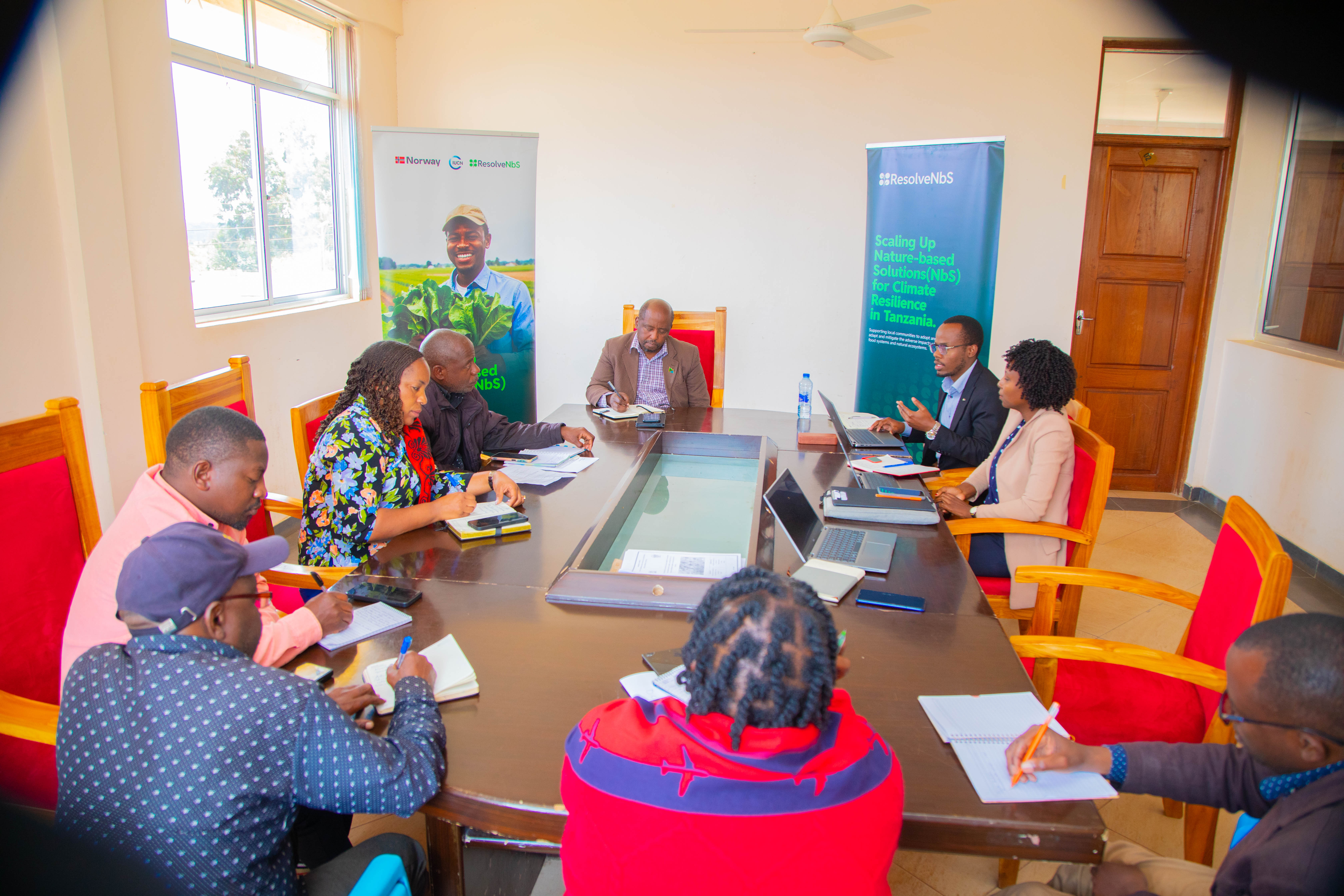 Afisa programa kutoka IUCN Bi. Sharon Kishenyi akitoa utambulisho wa shirikisho hilo mbele ya mkurugenzi na baadhi ya wakuu wa idara na vitengo, amesema shrikisho la IUCN imekuja kutambulisha mradi wa RESOLVE NbS (suluhisho) kwa ngazi ya halmashauri wakiongozana na mbia mmoja kutoka CARE.